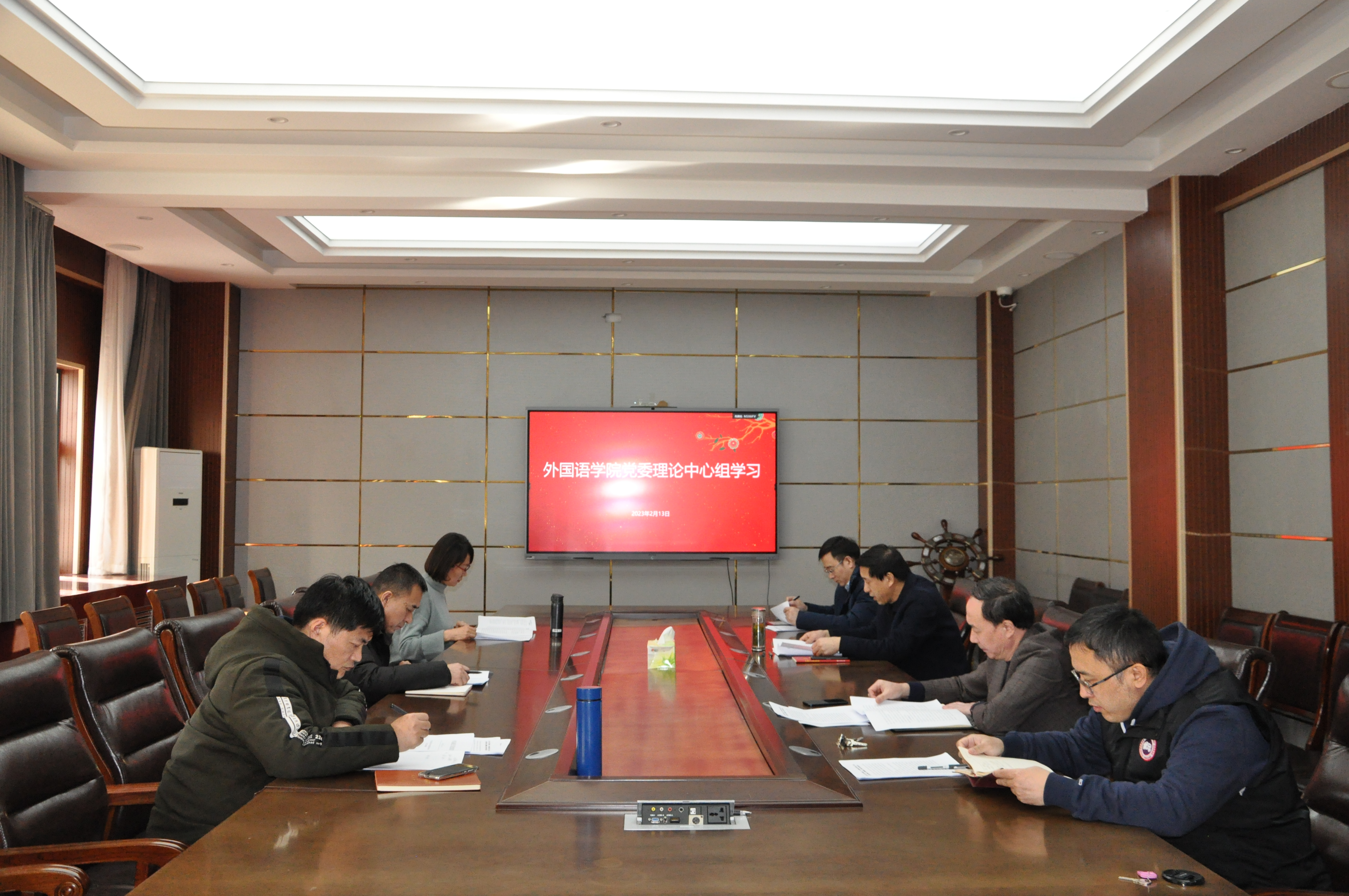 2023213日下午14:30,学院党委理论学习中心组2023年第1次学习研讨和2022年度民主生活会会前集体学习,在长清湖校区文渊楼A313会议室召开。会议由学院党委书记岳希亮主持。党委副书记张京国,副院长陶业涛、王金娥、葛云锋,党委委员李源革、司世牧参加会议。会议分两个阶段进行。