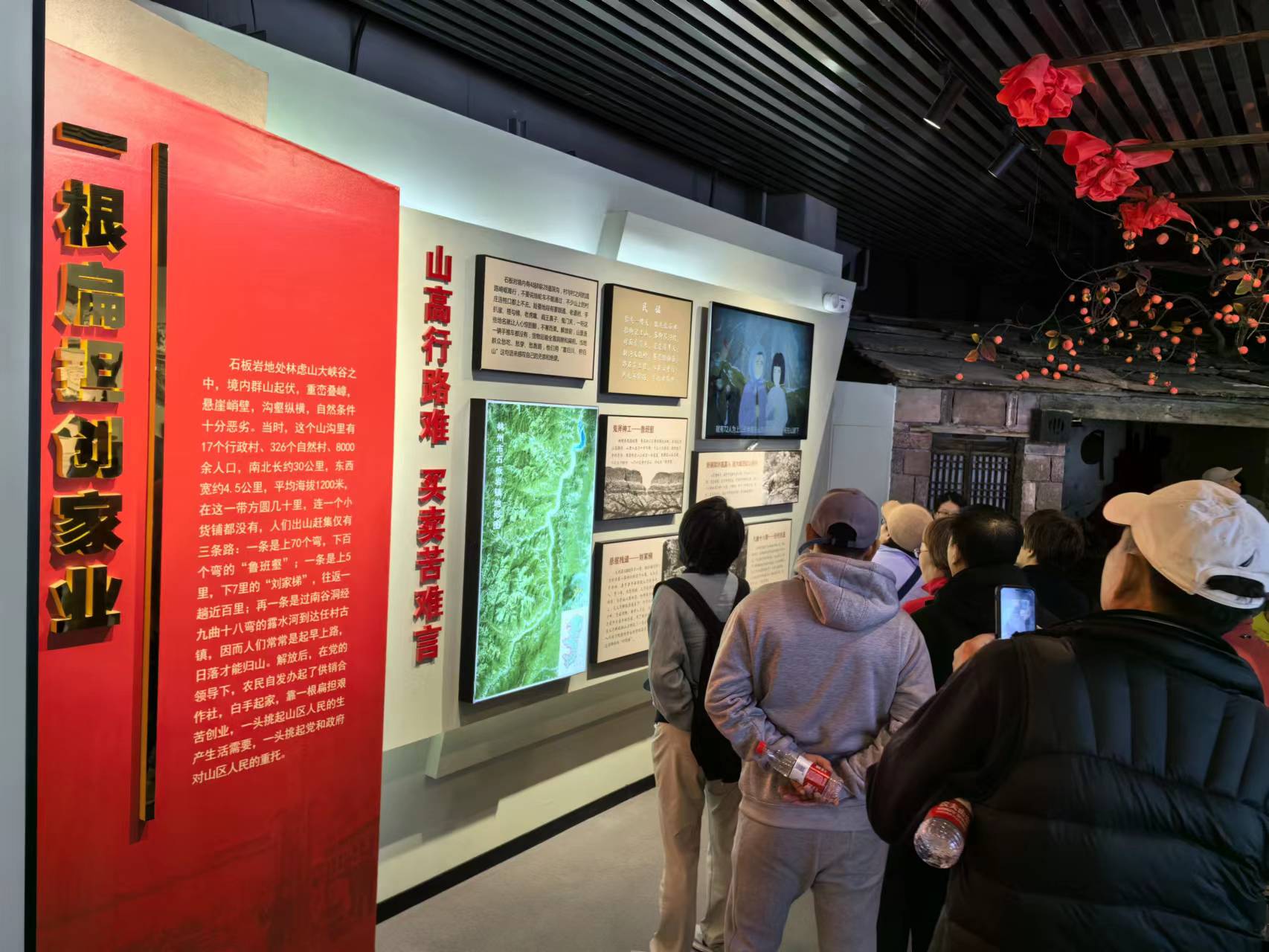 扁担精神纪念馆以生动的图文和影像展现了石板岩供销社干部职工凭借一副铁肩膀挑起沟通城乡的重担,生动感人的事迹再现了“艰苦创业、勤俭办社、一心为民、开拓创新”的扁担精神,使教师党员们深切体会到先辈们全心全意为人民服务的坚定信念和无私奉献的崇高精神。