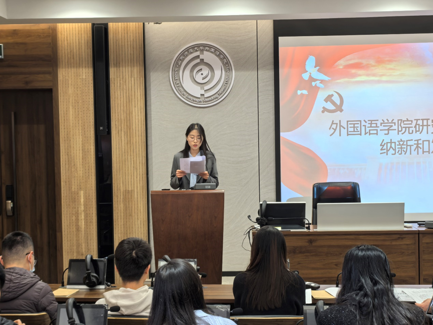 2024年11月27日下午,山东师范大学外国语学院研究生第一党支部于文渊楼B区242会议室召开党员大会。会议由党支部宣传委员金铭同志主持,支部全体党员参加。