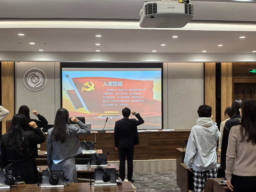 接着,为激励与会党员不忘初心、牢记使命、砥砺前行,全体党员面向党旗,预备党员进行入党宣誓仪式,老党员重温入党誓词。