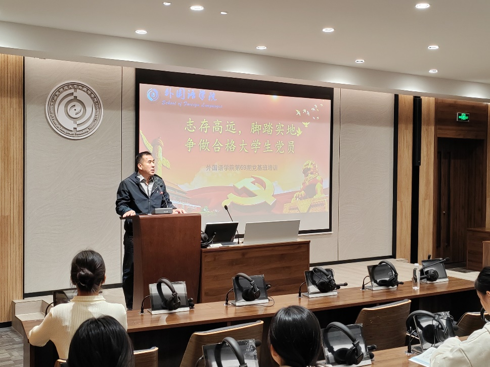 2024年10月9日晚,外国语学院第69期党的基本知识培训班开班仪式暨第一次专题讲座在文渊楼B区242举行。本次讲座由外国语学院党委副书记陶业涛主讲,培训班全体学员参加。