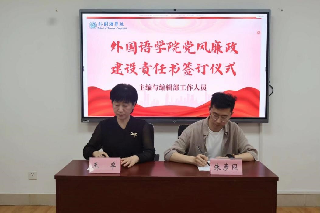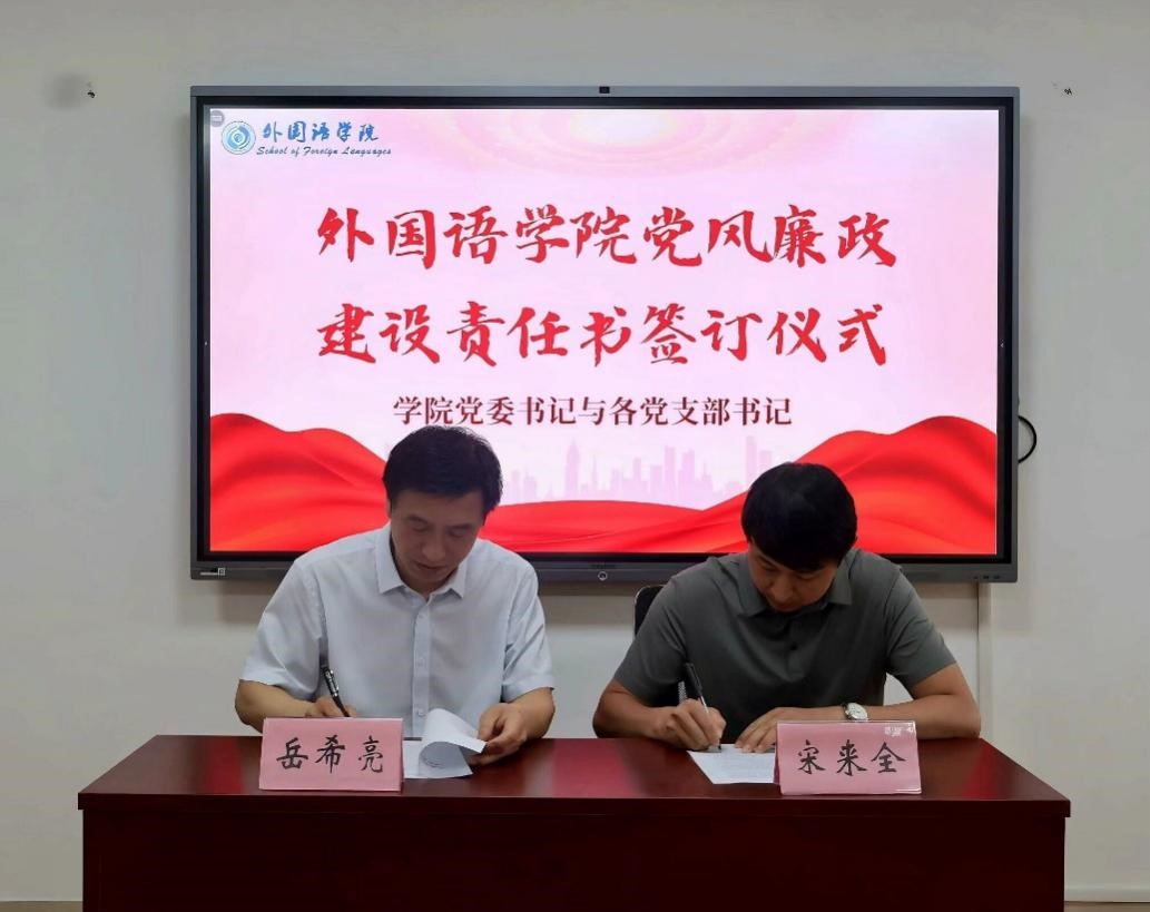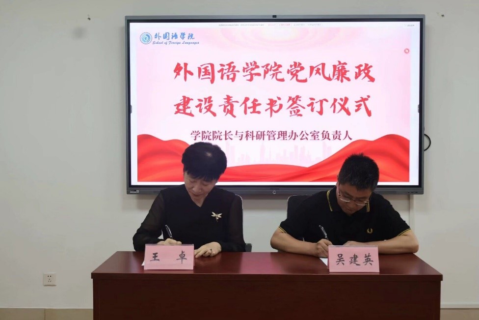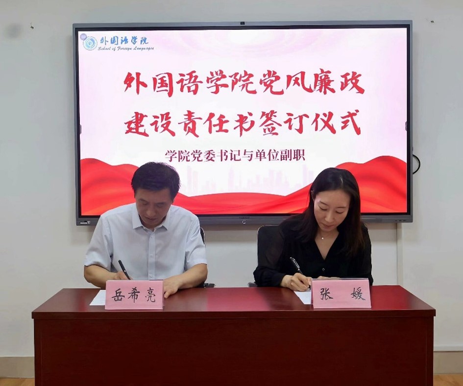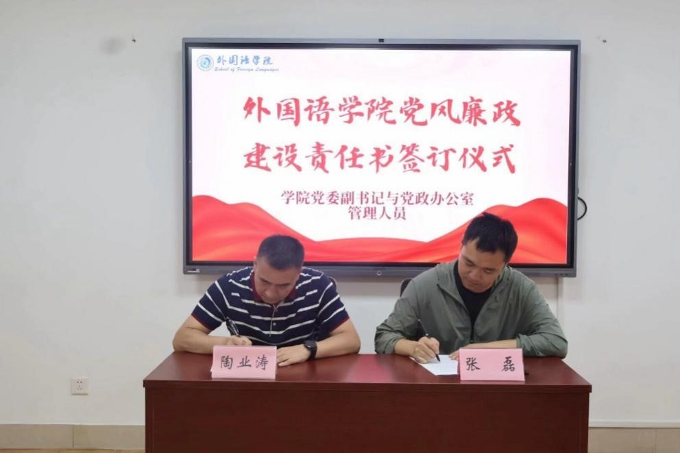 外国语学院将以此次签订为契机,坚持把加强党风廉政建设作为一体推进不敢腐、不能腐、不想腐的基础性工程,努力巩固风清气正的育人环境,以实际行动推动党的二十大精神在学院落地生根、开花结果,为学校第九次党员代表大会目标任务的实现贡献力量。