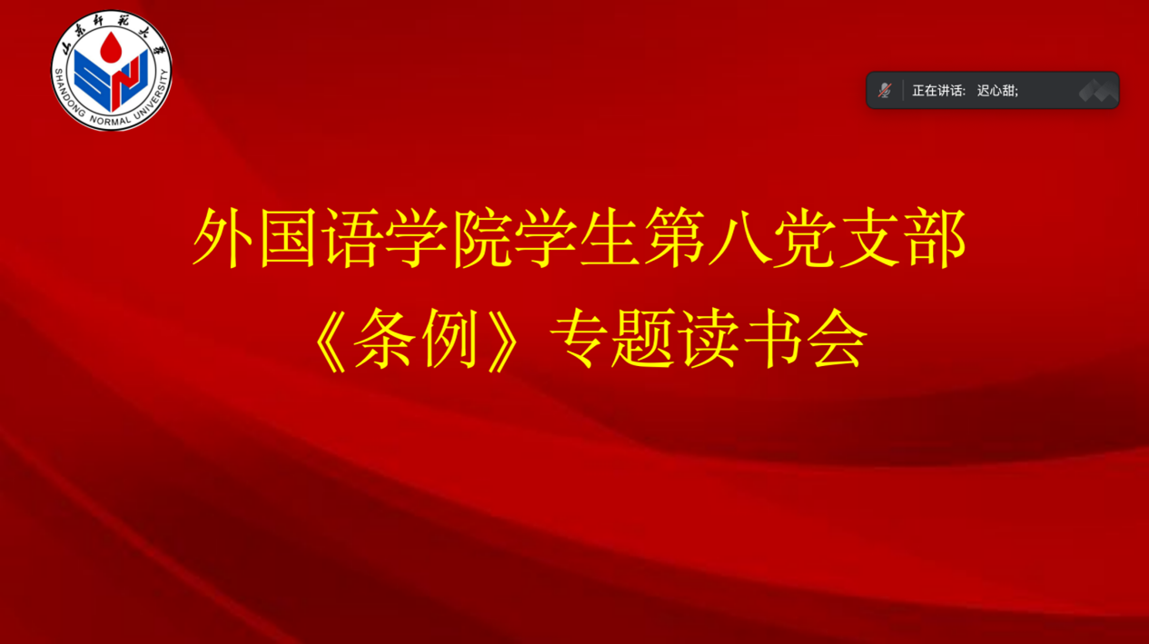 2024年3月13日、4月23日,外国语学院学生第八党支部召开两次线上读书会,专题学习新修订的《中国共产党纪律处分条例》(以下简称《条例》)。会议由党支部书记王鑫主持,该支部全体党员参加了学习。