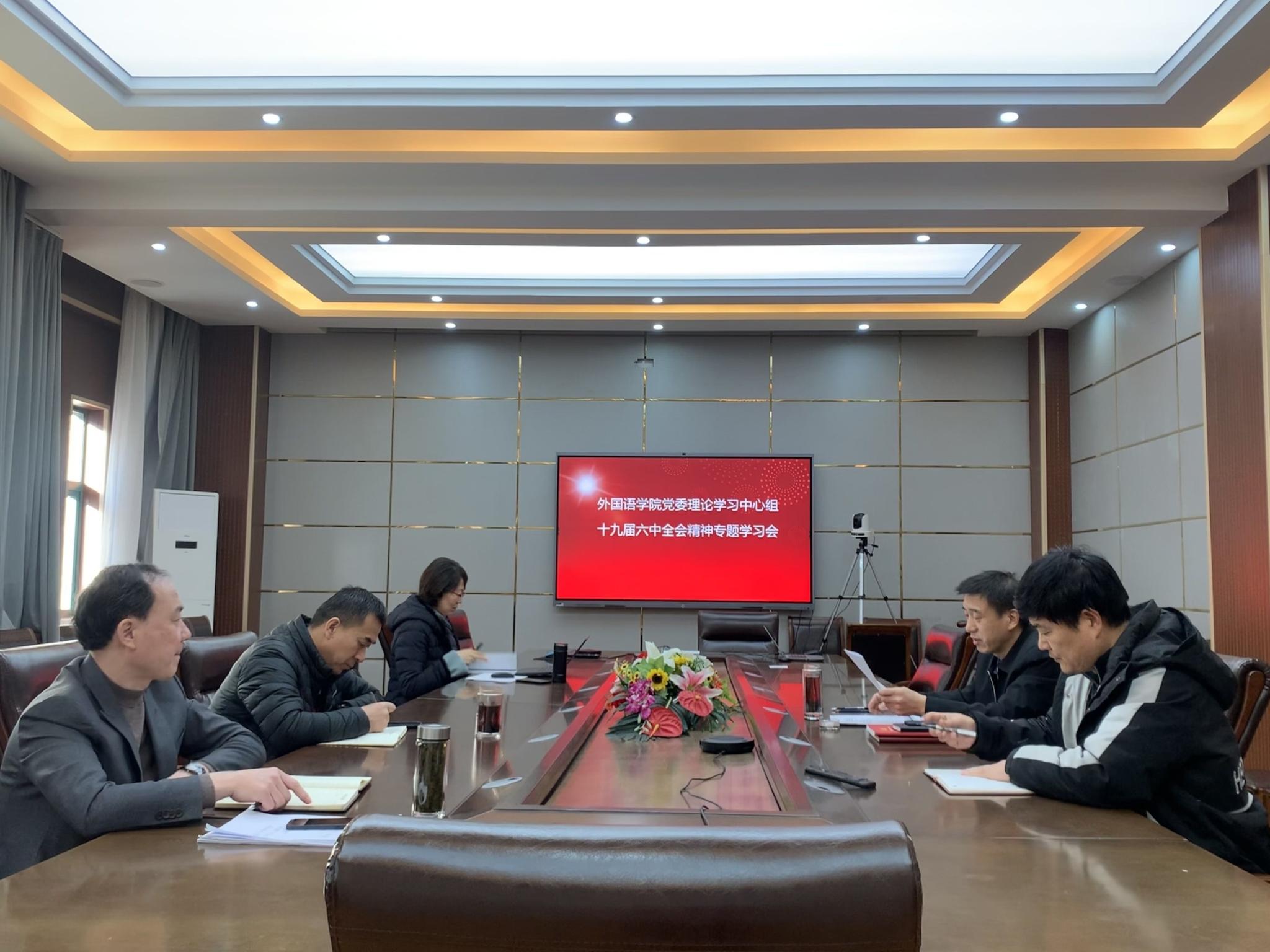 11月22日上午,外国语学院党委理论学习中心组召开专题学习会,传达学习贯彻党的十九届六中全会精神。学院党委中心组成员参加会议,学院党委书记岳希亮主持会议。