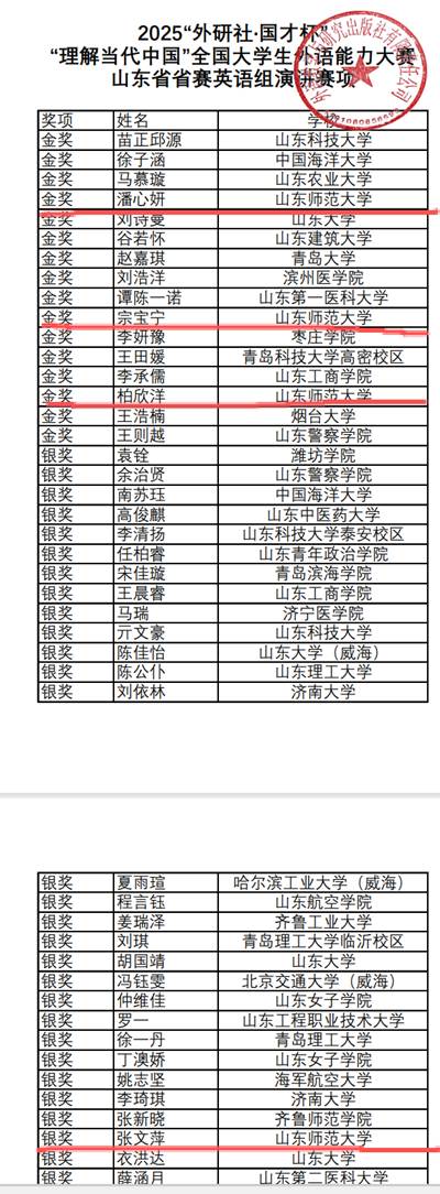 我校学子在山东赛区比赛中的卓越表现,充分展现了他们卓越的外语应用能力、敏捷的思辨能力及全面的综合素质。这份荣誉不仅是他们个人勤奋努力的成果,也是各位指导教师辛勤付出和无私奉献助力选手取得的优异成绩,彰显了外语竞赛中心精心组织、指导竞赛的突出成效,更生动体现了我校跨登录入口人才培养和素质教育的成效,选手们的出色表现为全校学子树立了优秀榜样。
