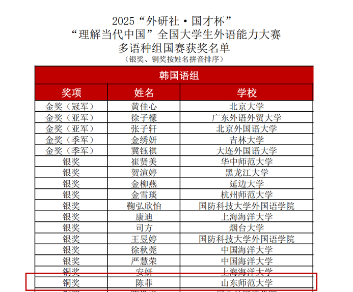 2025年12月6日,2025“外研社·国才杯”“理解当代中国”全国大学生外语能力大赛多语种组全国总决赛在北京成功举行。本届赛事以“理解中国,沟通世界”为主题,吸引了来自全国85所院校的180名选手同台竞技,竞争空前激烈。我校多语种组学生经过校赛、省赛、国赛三个赛段的激烈角逐,共获得国赛银奖1项、国赛铜奖6项。