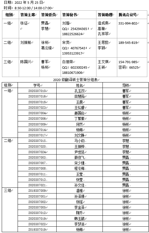 2022.5.25外国语学院2022届翻译硕士专业研究生答辩公告