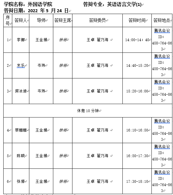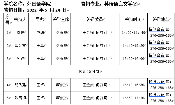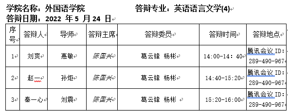 2022.5.24外国语学院2022届英语语言文学专业硕士研究生答辩公告