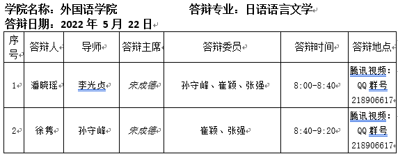 2022.5.22外国语学院2022届日语语言文学专业硕士研究生答辩公告