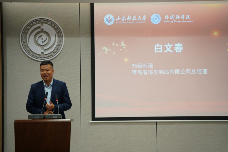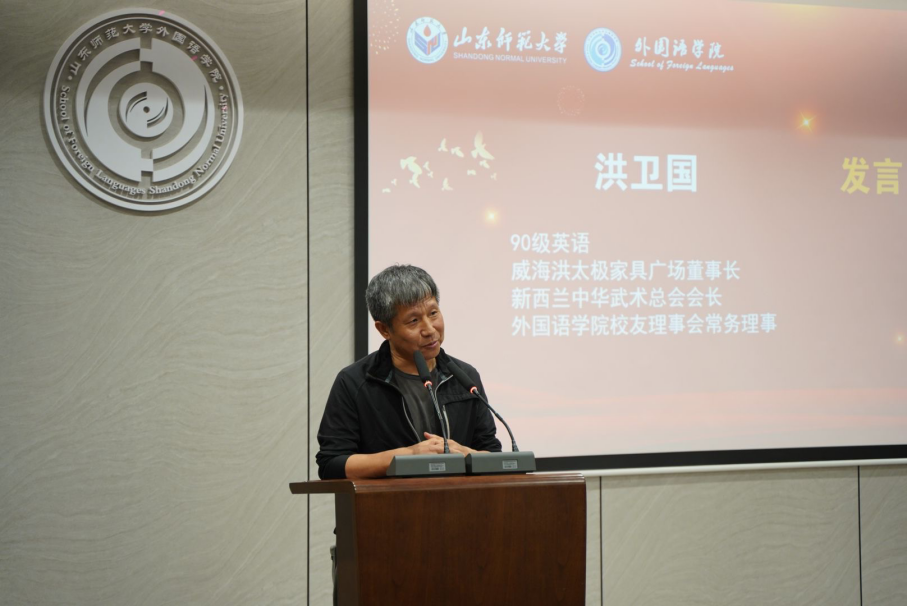 在校友论坛环节,78级日语专业校友、华兴报社社长、原山东师范大学北美校友会会长、外国语学院校友理事会名誉会长程汝钊,74级英语专业校友、原中国驻津巴布韦使领馆参赞、学校北美校友特别顾问郭法欣,87级日语专业校友、绮丽集团有限责任公司总经理张世杰,90级英语专业校友、威海洪太极家具广场董事长、新西兰中华武术总会会长、外国语学院校友理事会常务理事洪卫国,95级韩语专业校友、青岛春海发制品有限公司总经理白文春,95级韩语专业校友、青岛泰通源国际贸易有限公司董事长郭参,01级英语专业校友、鄄城鼎顺发制品有限公司董事长、外国语学院校友理事会常务理事韩爱民,02级英语专业校友、济南长清大学城管委会投资促进部主任王桂金分别发言。