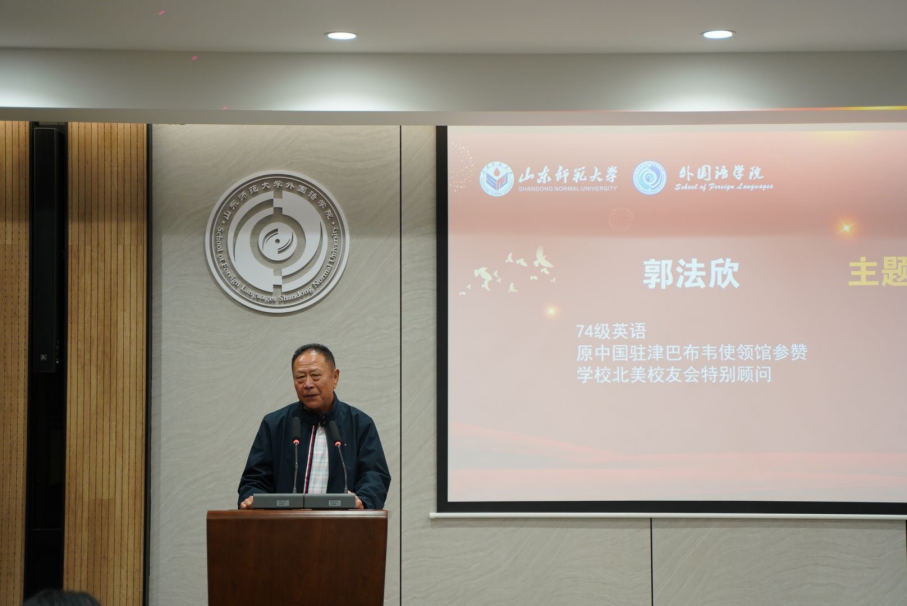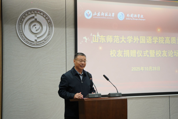 10月28日下午,外国语学院高质量发展校友捐赠仪式暨校友论坛在长清湖校区文渊楼B区242报告厅举行。学院74级英语系校友、原中国驻津巴布韦使领馆参赞、学校北美校友会特别顾问郭法欣,77级日语系校友、华兴报社社长、山东师范大学北美校友会原会长、外国语学院校友理事会名誉会长程汝钊等校友代表,学院党委书记王松、院长王卓、副院长张媛以及学院师生代表参加活动。活动由学院工会主席侯青龙主持。