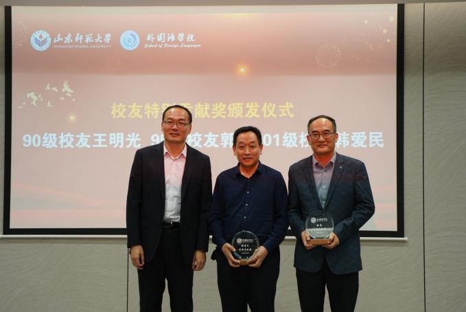 活动启动了三个校友捐助基金项目。63级校友韩高安、段芝芬夫妇以及94级校友王军、韩明夫妇两代校友共同创建“高山芝兰”树人奖学金,激励青年学生不负韶华、勇攀高峰。学院青岛校友会发起并组织捐赠教师激励发展基金,助力学院培育高层次高水平学术骨干。91级校友李刚创建“海纳”校友期刊发展基金,重点支持《山东外语教学》《基础外语教育》实现跨越式发展。