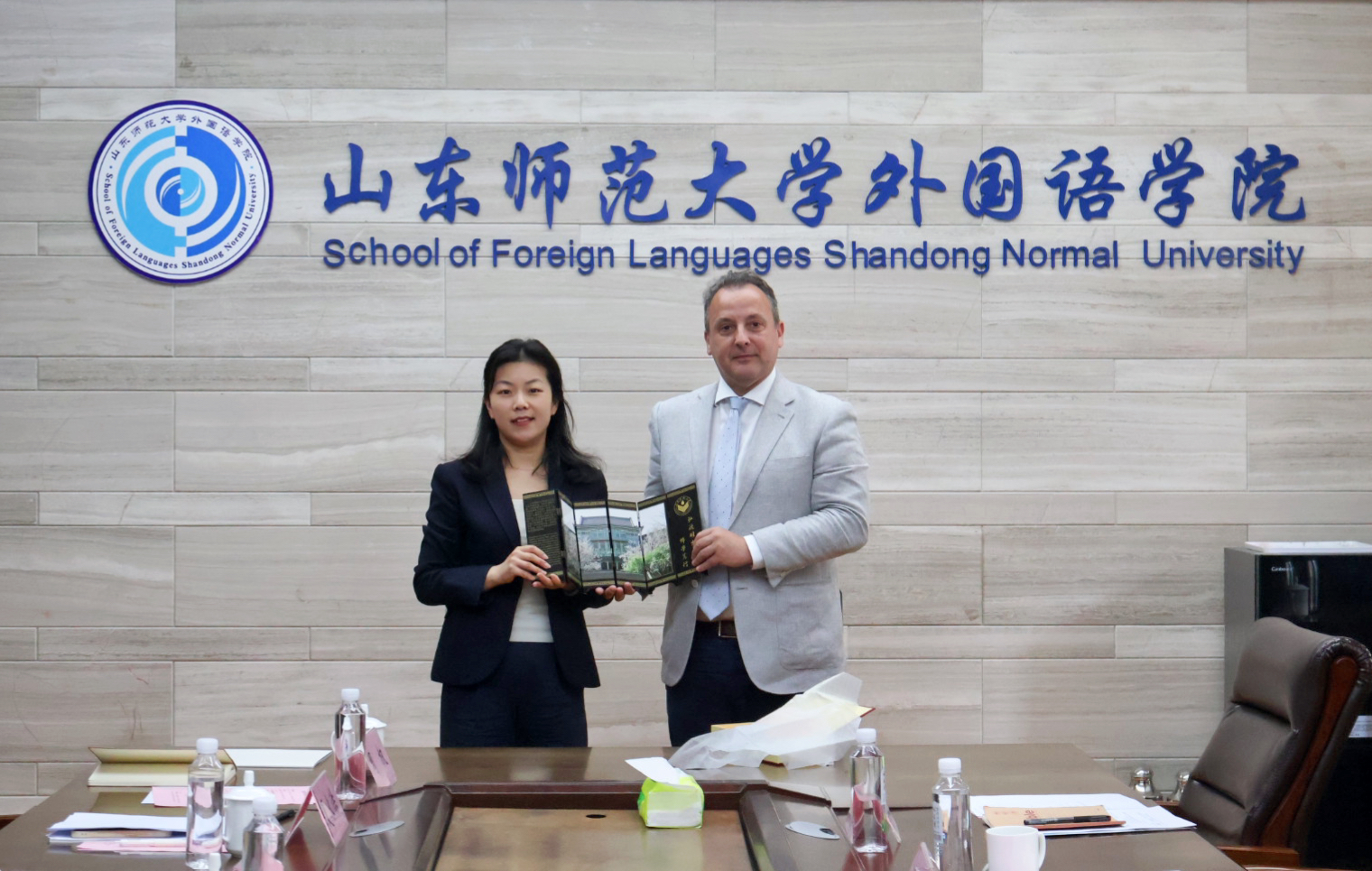 2024年4月12日下午,法国驻华大使馆教育合作负责人Xavier Loustaunau、法语师资培训负责人Didier Hetet、教育合作官员Célia Hoarau和胡心美女士四位代表访问山东师范大学外国语学院,就开展法语专业教师交流及联合师资培训等进行交流与探讨。学院党委书记岳希亮、国际交流与合作处副处长张鸥、副院长张媛,国际交流与合作处专家科副科长范峻伟以及西方语系的四名法语教师热情接待了法方代表团并在学院313会议室进行座谈。