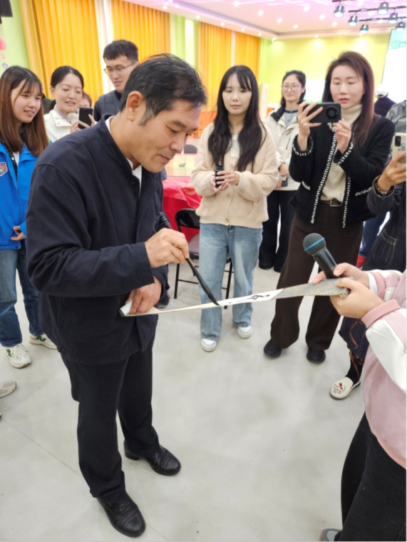 外国语学院日语系李光贞教授在开幕致辞中表示,本次活动是“市校融合”系列实践的重要组成部分,旨在通过汉字与汉籍文化的传播与交流,进一步促进高校与地方社会的文化共享与资源互动。在学术讲座环节,申乃群教授以《传统文化》为题,从音乐角度探讨文化理解的内涵;石运友老师则以《书法与文化》为主题,阐释书法所承载的文化精神,并在“最美汉字”展示环节现场挥毫,展现汉字艺术的独特魅力。