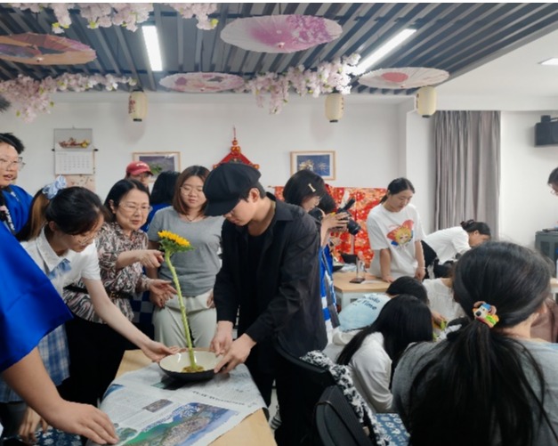 2025年5月15日下午3时,济南中日交流之窗于山东师范大学长清湖校区文渊楼A座437教室举行日本花道体验会。本次活动特别邀请了立命馆大学客座研究员、国际插花学会首任会长小林善帆老师作为讲师,为大家介绍日本传统花道。山东师范大学外国语学院日语系本科生季晓琳同学主持了此次活动,山东师范大学外国语学院日语系教师郑玉贵博士、外教松本彩花老师及部分山东师范大学外国语学院日语系本科生和研究生参加了活动。本次活动由日本国际交流基金会和济南中日交流之窗共同举办。
