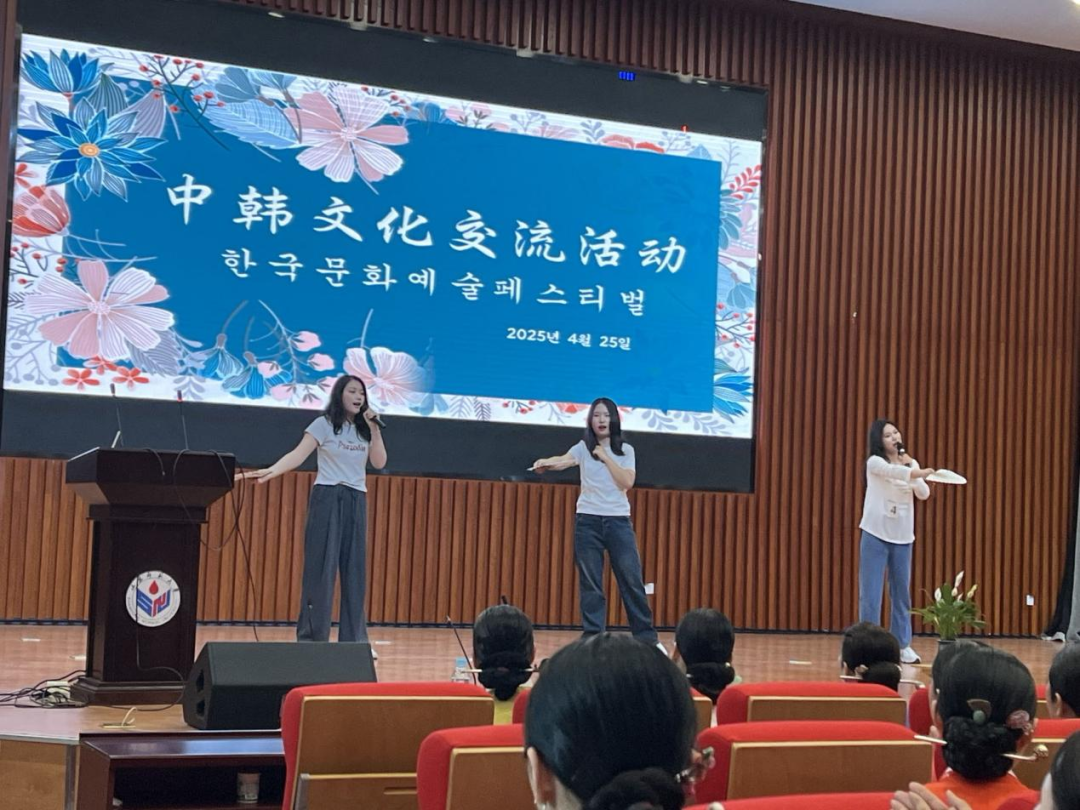 2025年4月25日,为深化中韩文化文明互鉴,促进两国青年友好交流,由山东师范大学外国语学院、韩国学研究所携手韩国国乐艺术团联合主办的“中韩文化交流活动”在山东师范大学长清湖校区文昌楼举行。东语系主任钟洁老师和朝鲜语专业师生代表、韩国学研究所所长金德均教授、高丽大学文化体育学院刘大龙教授等韩国专家学者共80余人参加了本次活动。