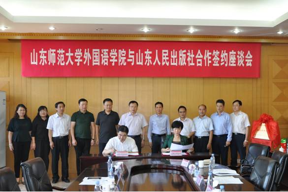 签约仪式上,外国语学院院长王卓与山东人民出版社社长胡长青代表双方签署了“山东省应用型外语人才(研究生)联合培养基地合作协议书”、“山东师范大学本科生教学实践基地合作协议”,外国语学院院长王卓与山东人民出版社总编辑杨大卫代表双方签署了“一带一路”学术研究中心签署战略合作框架协议”。与山东人民出版社签订第一批合作项目阿拉伯语版25种图书出版协议。