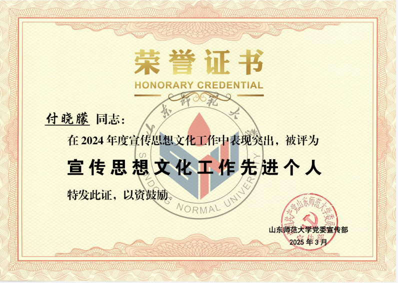 4月3日上午,山东师范大学2025年宣传思想文化工作会议在千佛山校区教学三楼报告厅举行,会议表彰了2024年度宣传思想文化工作先进单位和个人。