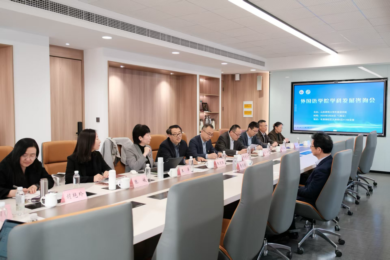 3月28日,外国语学院在A区413会议室召开学科建设与发展咨询会。会议特邀上海外国语大学原副校长、《外语界》主编查明建教授担任咨询专家。山东师范大学党委常委、副校长张茂聪出席会议并致辞,外国语学院院长王卓作学科建设专题报告。校研究生院院长李晓迪、学院党政领导班子成员、各学位点负责人与骨干教师代表共同参与研讨。会议由学院党委书记王松主持。