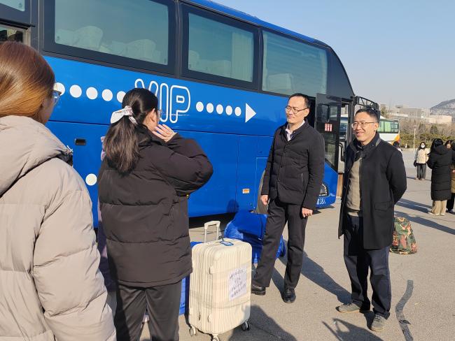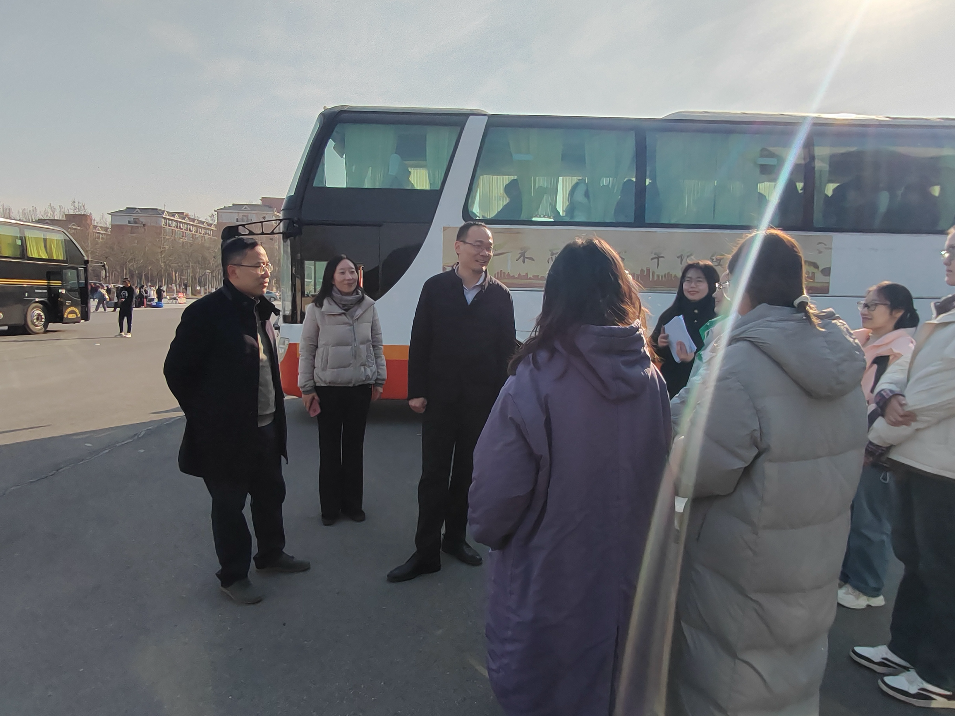 2025年2月19日-20日,外国语学院2022级英语专业及2021级日语、俄语专业二百余名师范生在长清湖校区图书馆门前广场集合出发,前往济南、青岛、泰安、临沂等地的实习学校,开始为期数周的教育实习工作。外国语学院党委书记王松、副书记司世牧、副院长张媛、辅导员王丽、邱琳到场组织工作,为实习生送行。