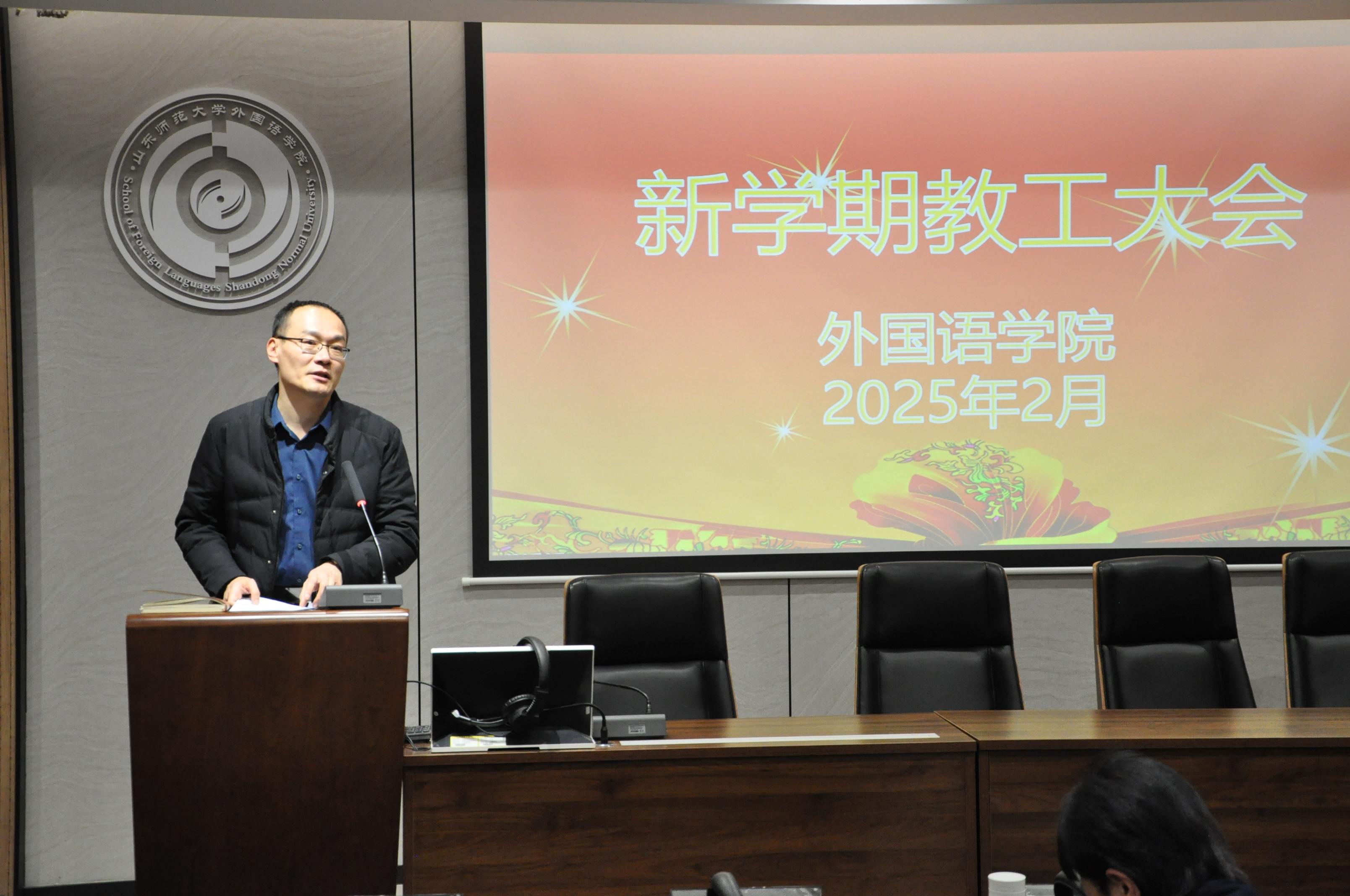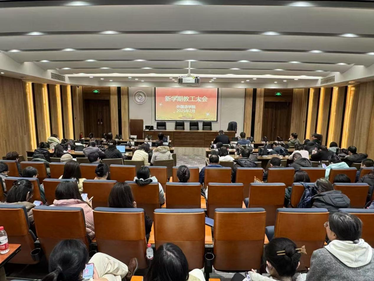 2月17日下午,外国语学院在长清湖校区B242报告厅召开春季学期全体教职工大会,传达学习学校2025年工作动员大会精神,部署新学期重点工作。学院领导班子及全体教职工参会,共绘发展蓝图。