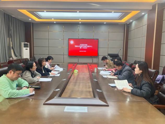 2025年1月9日上午,外国语学院党建业务融合创新发展中心揭牌仪式在长清湖校区文渊楼A区313会议室举行。学校组织部副部长路萍、学院党委书记岳希亮、院长王卓、领导班子成员,中心主任韩冰以及中心成员、各党支部书记、科室主任参加,揭牌仪式由学院党委副书记陶业涛主持。