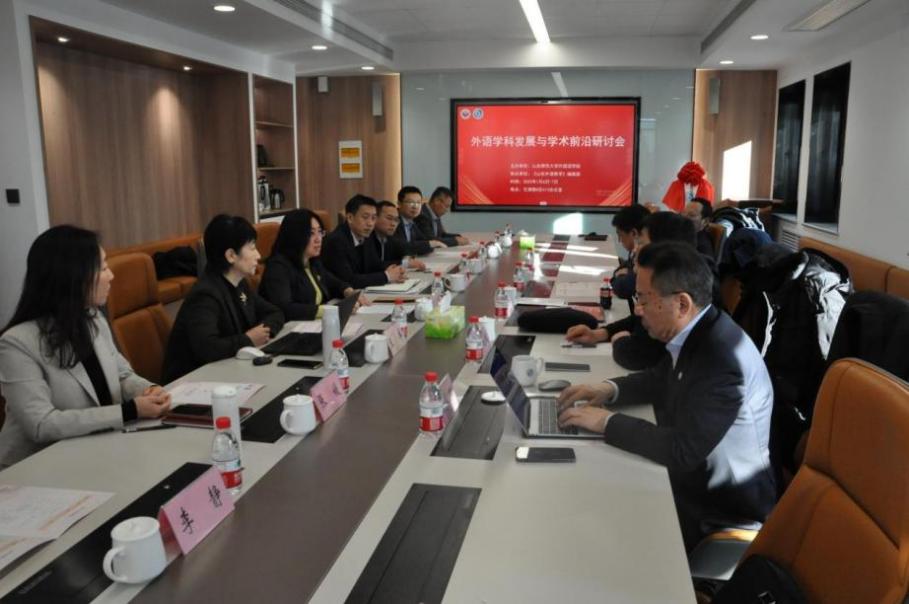 1月6日下午,山东师范大学外国语学院在文渊楼A区413会议室举办外语学科发展论坛。中国人民大学郭英剑教授、北京航空航天大学梁茂成教授、北京外国语大学李佐文教授、北京师范大学苗兴伟教授、北京语言大学王立非教授应邀作为专家出席论坛。山东师范大学副校长周珊珊、研究生院副院长宋强、外国语学院党委书记岳希亮、院长王卓、副院长张媛、副院长翟乃海及各学位点负责人出席论坛开幕式。开幕式由外国语学院党委书记岳希亮主持。