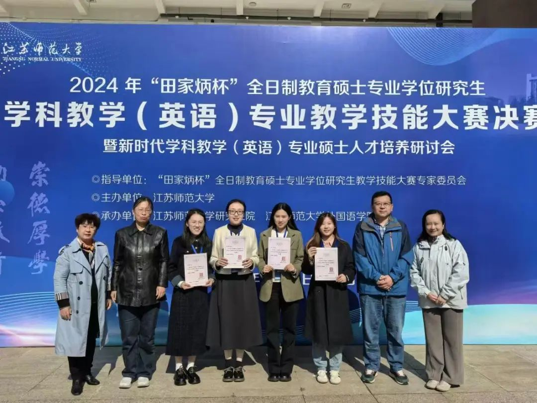 11月8日至11月10日,2024年全国“田家炳杯”全日制教育硕士专业学位研究生学科教学(英语)专业教学技能大赛决赛暨新时代学科教学(英语)专业硕士人才培养研讨会在江苏师范大学成功举办,该赛事是在全国教育专业学位研究生指导委员会指导下举办的国家级赛事,也是目前国内层次最高、规模最大、影响最广的教育硕士教学技能竞赛。本届大赛决赛共有来自107所高校的252名选手入围决赛。决赛分为随机抽题、限时备赛、模拟授课、现场答辩四个环节,全面考察选手的专业知识功底、教学设计水平和随机应变能力。