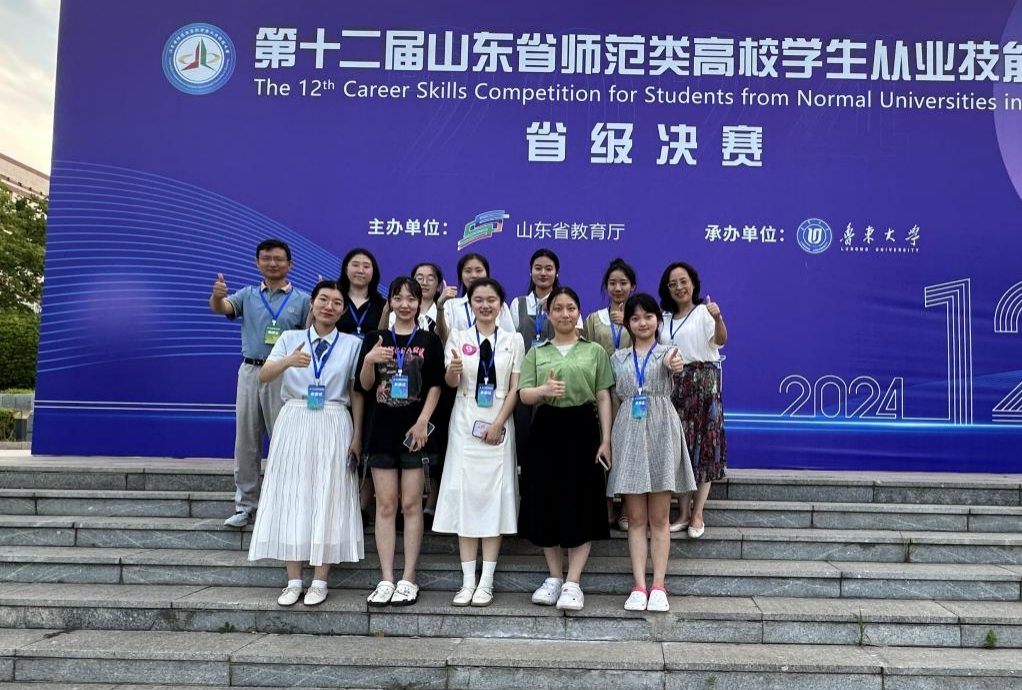 2024年7月17日至21日,备受瞩目的第十二届山东省师范类高校学生从业技能大赛在鲁东大学圆满落幕。我院学子李嘉欣、张宇萱、李可心、王安琪、杨茗、袁怡宁、余祖洁等积极参赛,获得优异成绩。大赛内容设计科学严谨,对选手们提出了高要求,考验了他们的应变能力、创新思维和语言表达能力。在备赛过程中,工作坊教师团队群策群力,共同研讨教学设计,确保每一个细节都能精益求精。参赛选手们进行了多次专项培训和模拟演练,不断提升自己的教学技能。最终,李嘉欣与张宇萱荣获一等奖,李可心与王安琪获得二等奖,杨茗、袁怡宁及余祖洁荣获三等奖。