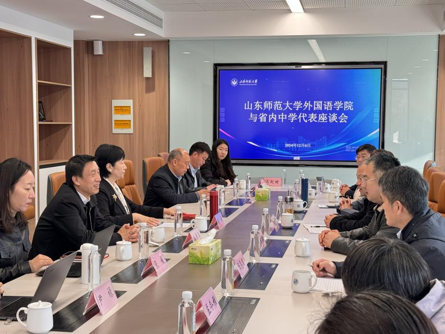 大会举办之前,12月6日上午,山东师范大学外国语学院在长清湖校区文渊楼A413会议室召开了“山东师范大学外国语学院与省内中学代表座谈会”。来自省内九所高中的校长、副校长以及俄语学科负责人参与座谈,外国语学院党委书记岳希亮、院长王卓、副院长张媛、俄语系副主任王世臣、教师尹禄出席会议。
