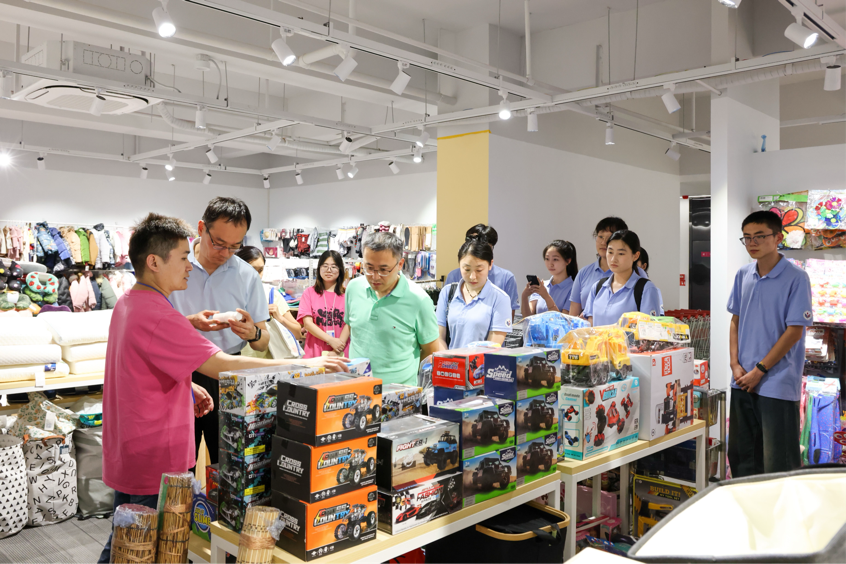 随后,学院一行前往义乌国际商贸城。在市场负责人的引导下,大家先后走访了饰品、家居用品、电子产品等多个特色区域,详细了解了市场的整体布局、各区域商品的品类特色以及近年来跨境贸易的发展态势。过程中,学院一行与多位商户进行了深入交流,商户们纷纷表示,在与不同国家客户开展贸易时,多语种人才在沟通洽谈、合同签订、售后对接等环节发挥着关键作用,尤其是在开拓新兴市场时,能够熟练运用当地语言的人才更是稀缺,这为学院的人才培养工作提供了实际参考。