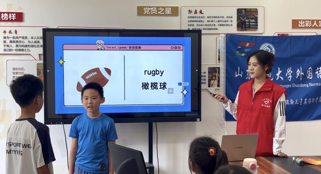 2025年7月10日至14日,山东师范大学“语行先锋”社区混龄儿童英语助学实践队走进济南市槐荫区金科城第二社区与历下区文恒社区,在学院团委书记、学工办主任唐琨及辅导员邱琳的指导下开展了一系列双语教学实践活动。