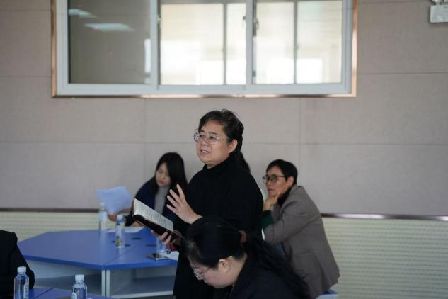本次教学研讨活动由副院长张媛主持,对张珉老师的课堂内容展示做了简要总结。张珉老师围绕课程主题,从教学对象、教学理念、教学方法、教学目的等方面分享了自己的课程设计思路,具体阐述了如何结合插画与文本引导学生进行文本分析,并通过分组汇报ppt的形式锻炼学生思辨与迁移能力。