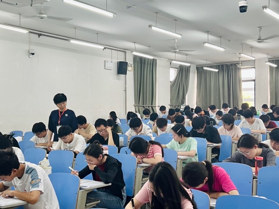 2024年7月1日,我校进入2023-2024-2学期期末考试周。上午8:30分各科目准时开考,外国语学院院长王卓、副院长张媛、英语系副主任刘璇、教务员高准等一行,到外语专业考试和公共英语考试所在考场展开巡考。