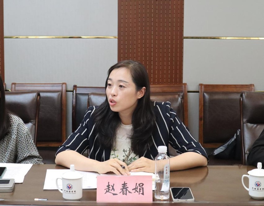 会上,徐彬教授还简要介绍了学院翻译硕士的培养模式,学院重视对学生翻译能力的实训,引导学生积极参与图书翻译实践,并有相当数量的译著出版,表达了与中国外文局在学生实习方面开展合作的积极意愿。赵春娟副教授分享了在美国孔子学院的教学经历,并结合在教学过程中遇到的实际困难,表示孔院的课程设计要更加结合当地情况,因材施教。张磊老师介绍了“国际中文传播教师证书考试”的考点建设情况。