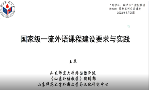 随着2023年4月第二批国家一流课程的公布,新的一轮省一流、国一流课程的申报也即将提上日程。教研室各高校在课程建设方面投入了大量的精力,但针对课程申报、材料整理等方面依然存在诸多困惑。2023年7月25日19点,虚拟教研室邀请两位第二批国家级一流课程的主持人廊坊师范学院张秀梅教授和山东师范大学王卓教授,做客暑期系列公益讲座。张教授介绍了廊坊师范学院《大学英语》课程建设的历史、基本路径、课程内容等,着重向大家展示了团队在课程特色,课程思政等方面的探索。王卓教授通过解读教育部有关一流课设建设的文件,系统的讲解了一流课程建设及评价的体系,并以《美国文学》课程为例,向与会老师展示了如何进行课程的内容重构、方法创新等问题。两位专家细致、全面的解读,为老师们带了一场内容丰富、收获满满的课程建设盛宴。