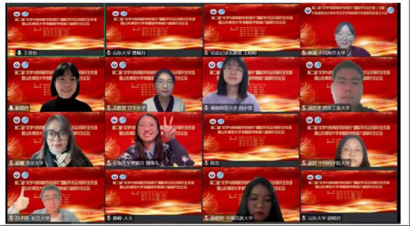 11月12日,山东师范大学外国语学院第六届研究生论坛在我院成功举办。在此次论坛中,来自北京大学、南京大学、中国人民大学、中国科学院大学、山东大学、北京外国语大学、上海外国语大学、西北工业大学、中国海洋大学、贵州大学等全国高校的研究生60余人齐聚云端,分享了自己的学术研究成果。