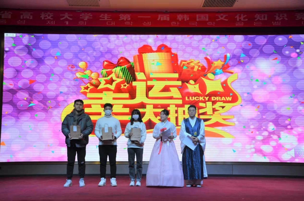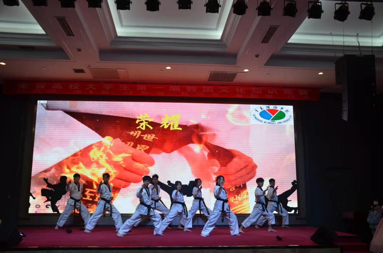 会场中,主办方在展厅中准备了茶点以及试穿韩服项目供大家休息体验,各位嘉宾以及参赛选手相互交流,现场气氛融洽。此外,现场抽奖环节也为本次活动增加了几分趣味性。青岛滨海学院带来精彩的跆拳道表演《荣耀》、山东师范大学19级韩语专业学生、山东女子学院学生刘雪以及山东师范大学舞蹈队学生带来的歌舞表演亦是为本次活动增色不少。