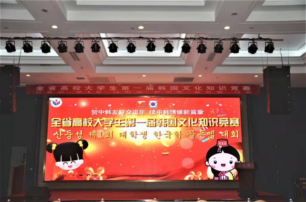 2021-2022年是中韩友好交流年,值此之际,由山东师范大学外国语学院主办,韩国学中央研究院协办的山东省高校大学生第一届韩国文化知识竞赛于11月28日上午在长清区泉盈酒店成功举办。本次大赛的主题为“贺中韩友好交流年续中韩情缘新篇章”。山东师范大学外国语学院党委岳希亮书记,王金娥副院长,东方语系主任钟洁老师、山东大学外国语学院韩语系博士生导师牛林杰教授及其他各高校韩语负责人出席活动。