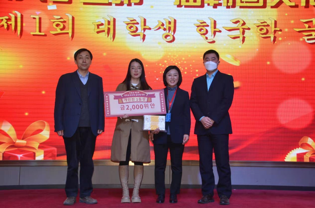 表演结束后,王金娥老师主持大赛开幕。她讲到,本次大赛举办恰逢迎来中韩建交30周年之际,希望通过比赛为全省韩国语专业的学生们提供了一个学习和交流的平台,鼓励学生们做通晓国际规则,知识、能力、品格全面发展的复合型应用型高素质的外语外事人才,同时也借此机会增进山东各高校韩国语专业间的交流与合作。此外,她向此次参赛的二十四所高校,参赛选手及各高校负责老师表示热烈的欢迎和衷心的感谢。并最后预祝各位参赛选手有出色的表现,同时预祝此次比赛一切顺利,取得圆满的成功!