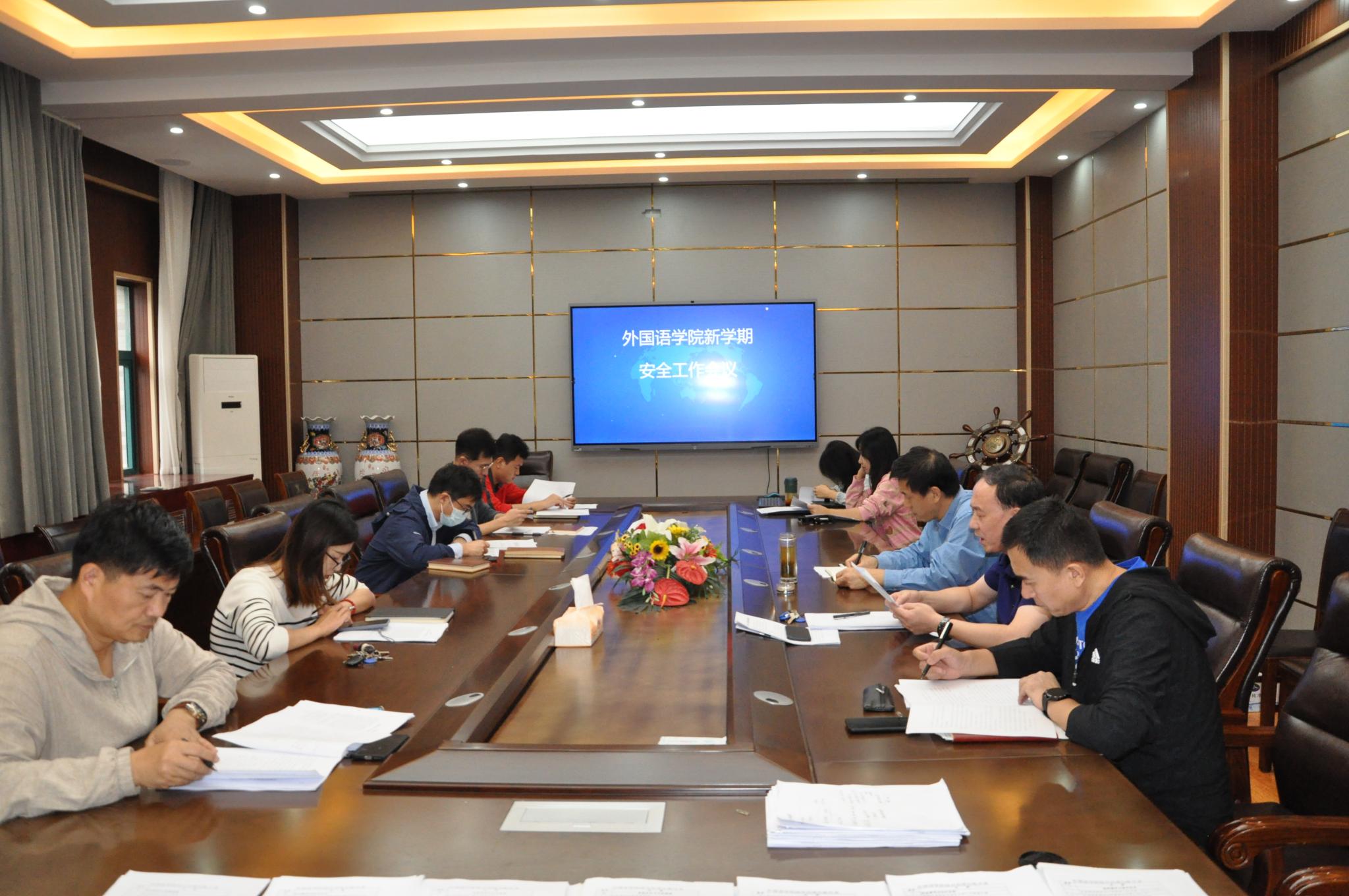 9月28日上午,外国语学院在长清湖校区文渊楼A区313学院会议室,召开2021年秋季安全工作会议。学院党委书记岳希亮、党委副书记张京国、副院长陶业涛出席会议,学院科室主任、全体辅导员及部分行政管理人员参加会议。会议由陶业涛主持。