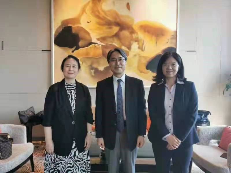 (李光贞教授、崔颖副教授与日本驻青岛领事馆井川原贤总领事合影)