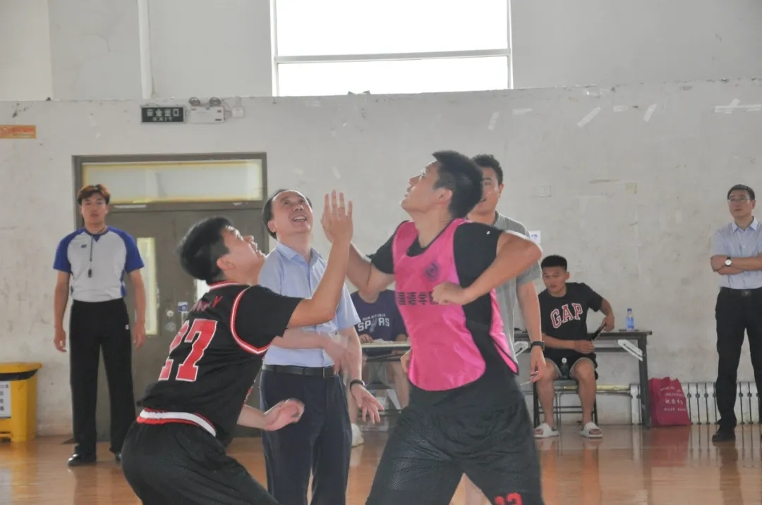 6月9日,由外国语学院团委主办,外国语学院学生会体育部承办的毕业季系列活动之“外国语学院男篮队2017级队员毕业告别赛”在长清湖校区体育馆落下帷幕。党委副书记张京国、副院长陶业涛、副院长葛云锋、团委书记司世牧、辅导员董欣、侯得霞、庄识氐等众多老师莅临观赛,副院长陶业涛、李启迪老师、李炳军老师参与其中,与队员们共同挥洒激情与汗水。