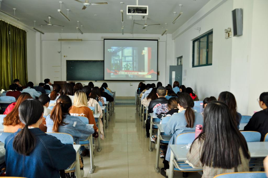 外国语学院党委高度重视此次集体学习活动,提前进行了统一部署。学院领导班子带领学院行政人员在长清湖校区文渊楼A区学院会议室,学院党委副书记金鹏和学院学工办主任、团委书记司世牧带领学院团干部在长清湖校区第一报告厅,辅导员侯得霞带领2017级团员青年在长清湖校区文渊楼B区教室等区域分别组织观看了“纪念五四运动100周年大会”的电视直播。