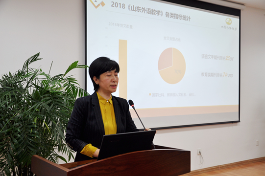 接着,王卓向各位编委做了2018年编辑部工作汇报。《山东外语教学》坚持以专栏/专题形式发文,打造期刊特色;捕捉热点问题,服务国家战略;全面数字化,优化资源;管理规范化,建章立制;获得读者高度评价,综合影响因子排名稳步提升。