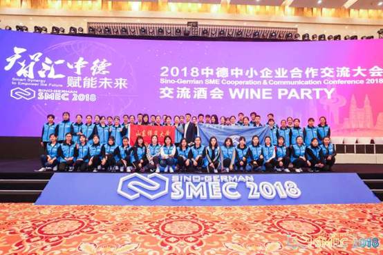 11月1日,2018中德中小企业合作交流大会在济南召开。本次大会以“智汇中德 赋能未来”为主题,由国家工业和信息化部、山东省人民政府主办。外国语学院遴选60余青年学生志愿者倾力服务大会,开展了为期3天的志愿者服务,主要从事商务咨询(外商)、会务接待、商务论坛等岗位服务工作,为此次国内中小企业与德国企业的顺利对接贡献力量。