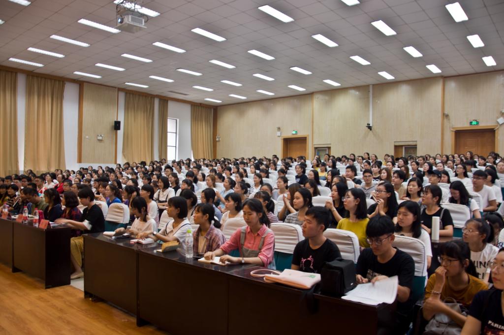 为欢迎2018级新生入学报到,顺利开展入学教育第一堂课,9月2日,外国语学院于长清湖校区第三报告厅召开了2018级新生师生见面会。外国语学院党委书记岳希亮,院长王卓,党委副书记金鹏,副院长张京国,副院长胡艳玲,副院长岑玮,团委书记、2015级辅导员司世牧,研究生辅导员董欣,2018级辅导员刘铭,2016级英语专业辅导员付晓朦,2017级辅导员侯德霞出席会议,2018级全体新生到场参加。会议由金鹏主持。