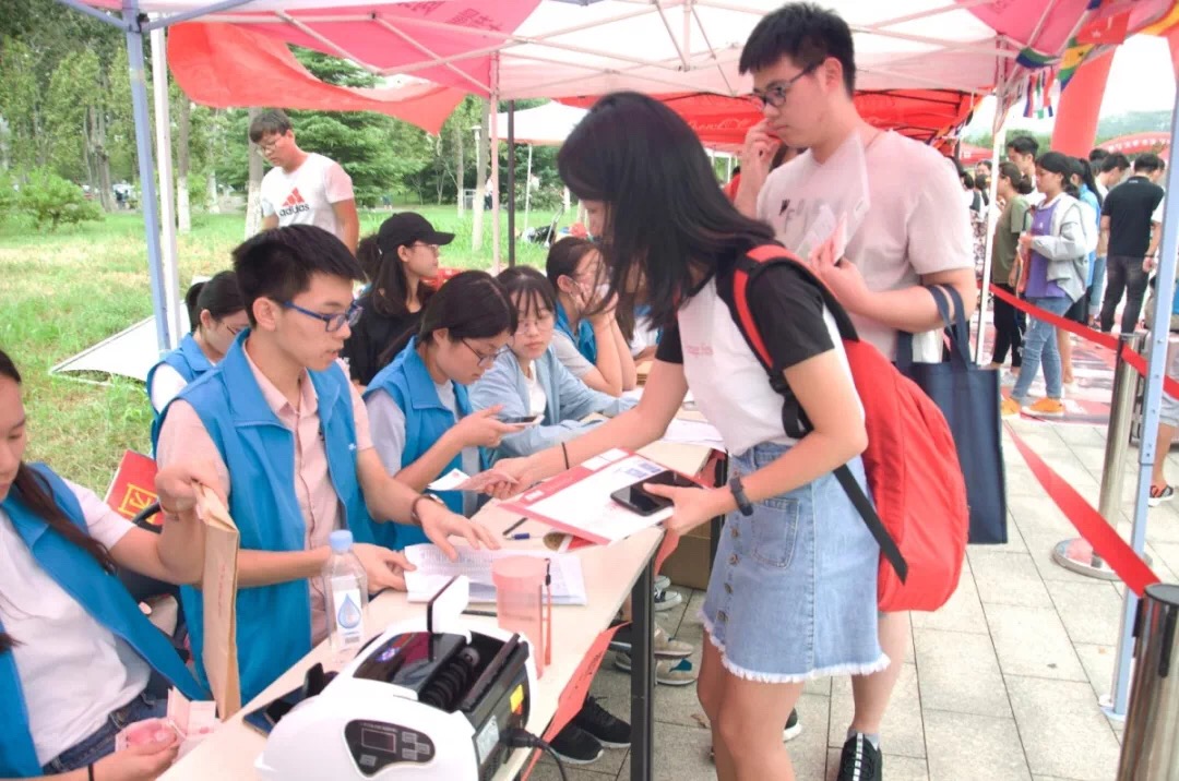 在学生会成员及志愿者的引导下,新生到达指定区域进行现场报到。为了维持迎新现场秩序,同时也为了锻炼新生的自理能力,新生在工作人员的指引下独立完成缴费、身份验证、递交材料、领取一卡通等物品等环节,而家长则被带领到休息区等候。整个报道流程与工作过程体现了学院工作人员高涨饱满的热情和细致入微的服务,拉近了新生与学院的距离,展示了学院浓厚的人文情怀与温馨氛围。