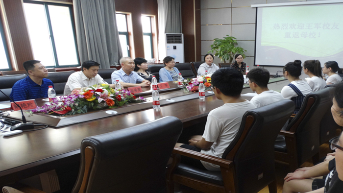 王军先生向在座师生深情讲述了自己回报母校的心路历程。自大学毕业后,他就萌生捐资回报母校的念头,2012年正式落实。弘毅奖学金包含了他对晚辈成长成才、回报社会的殷切期盼,同时也埋下了一颗希望的种子,给晚辈学子作出良好表率,启示他们功成名就后不要忘记感恩母校。王军还与学生亲切互动,询问他们出国目的和出国后的打算,教导学生们要对未来合理规划,珍惜在国外的时间。学生代表李雨桐现场发表演讲,表达了对王军先生的深切感激和未来学习奋斗的决心。最后,岳希亮表示,希望王军先生能够经常返校与师生交流,增进感情,启迪后辈。会议在掌声中圆满结束。