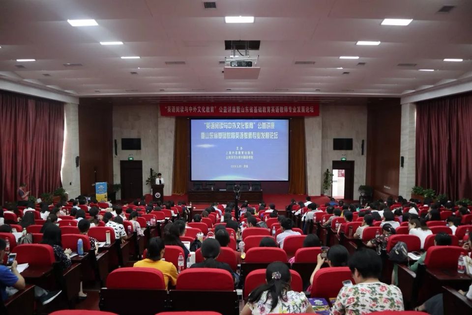 2018年5月29日,由上海外语教育出版社与山东师范大学外国语学院共同主办的“英语阅读与中外文化教育公益讲座暨山东省基础教育英语教师专业发展论坛”在山东师范大学千佛山校区成功举行。来自全省多个地区的中小学英语教研员、中小学校长和中小学英语教师,以及外国语学院英语学科教学和课程与教学论学位点的部分师生近三百人参加会议,5000多位老师通过网络直播在线观看了论坛。